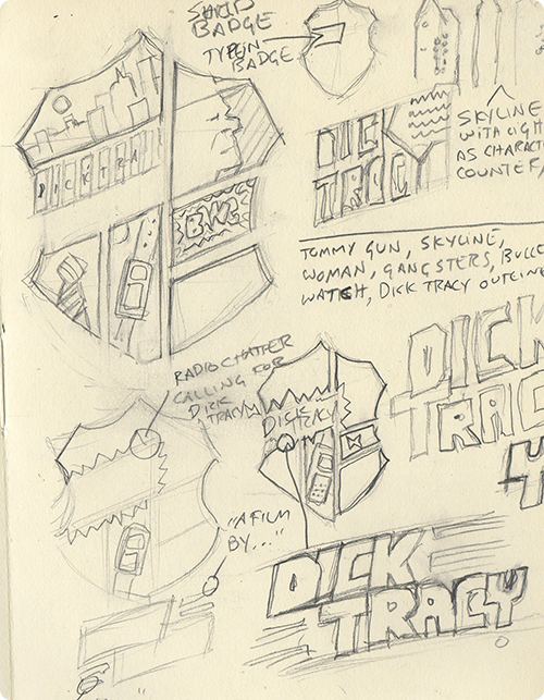 Alex 所分享的這張Dick Tracy 海報是他為 Silver Screen Society 創作的,對比最后的成品,草稿的詳盡程度可見一斑。