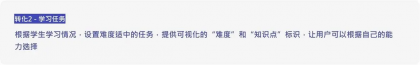 這點轉化到教育產品側,為學生提供教學內容的學習目標就尤為重要,有方向的學習更有效率。