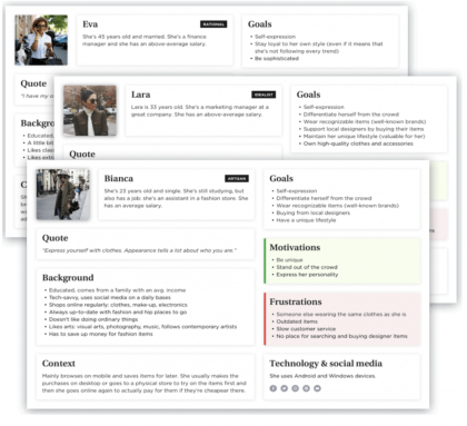 按照我們的邏輯順序,首先是創(chuàng)建角色。我們幾乎在所有項目中都會使用。基于我們的產(chǎn)品或服務(wù)的目標(biāo)群體,即不同的潛在客戶,構(gòu)建虛構(gòu)人物個性。這個工具可以讓我們更多地了解客戶的需求、問題、動機和行為。我們通過研討會、頭腦風(fēng)暴或通過定性和定量研究“簡單地”收集盡可能多的數(shù)據(jù)來實現(xiàn)這一目標(biāo)。