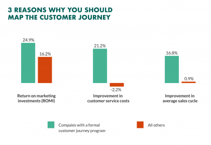 阿伯丁集團 Aberdeen Group 的一篇研究論文發現,擁有正式客戶旅程計劃的公司保持逐年增長,其中包括: