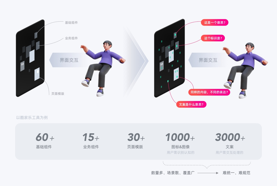 群核UED搭建設(shè)計規(guī)范體系已有多年,即便有相對豐富和完整的設(shè)計體系,我們呈現(xiàn)給用戶交互界面仍有體驗不一致、操作難理解、同一對象不同表達(dá)的問題,為什么?
