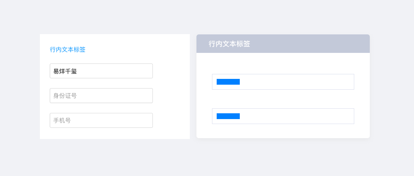 即標簽位于輸入框內,擁有節約縱向和橫向空間的優勢。行內標簽可分為齊行內文本標簽,行內圖標標簽,浮動標簽