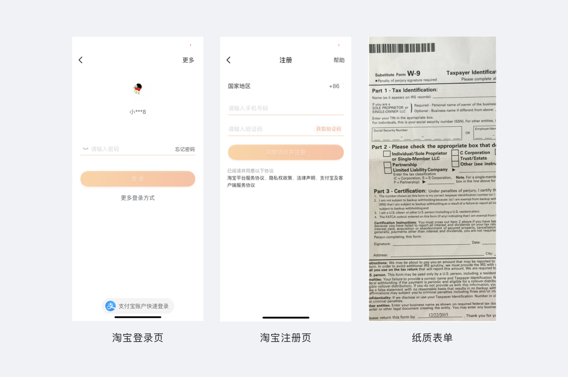 淘寶的登陸、注冊、紙質的單子便是表單