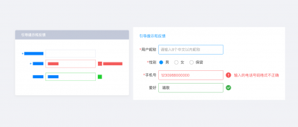手機號后面的紅色錯誤提示便是反饋提示,是對填寫信息的一個反饋結果。