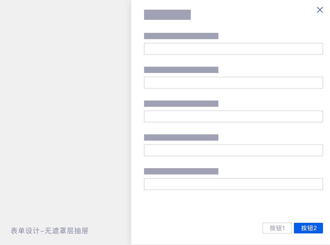 抽屜形式的表單展示方式是從屏幕右側彈出,有時候也會有從底部彈出的情況。這里主要分享從右側彈出的抽屜表單模式,抽屜模式還分為三種模式:有遮罩層的抽屜模式、無遮罩層的抽屜模式、擠壓模式。