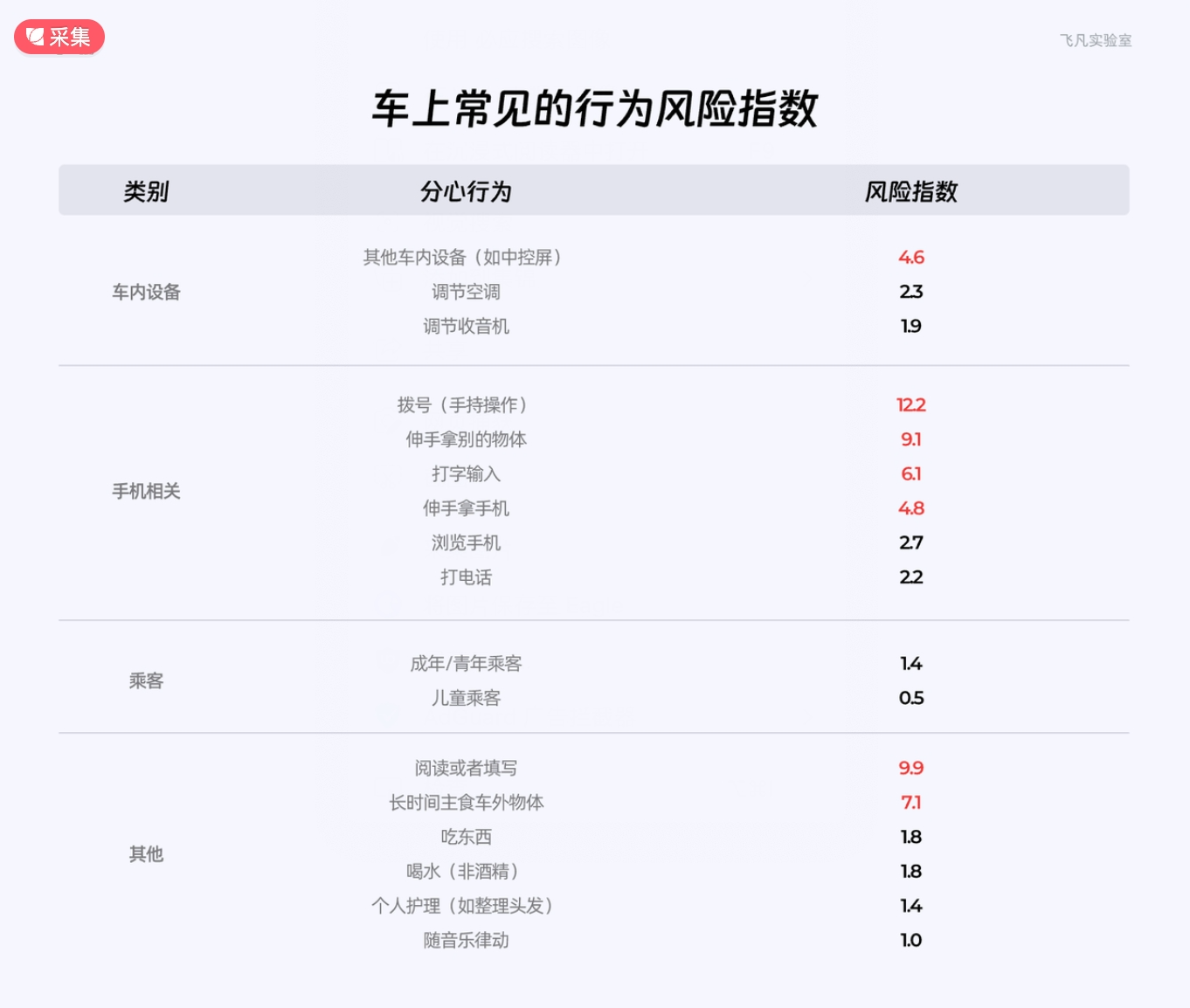 然而,需要注意的是,風險指數是一個相對的指標,不同的駕駛員可能會因其駕駛技能、經驗和個人特點而對同一行為產生不同的反應和風險感知。因此,駕駛員應該始終遵守交通規則和法律,盡量避免分心行為,以確保自己和他人的安全。