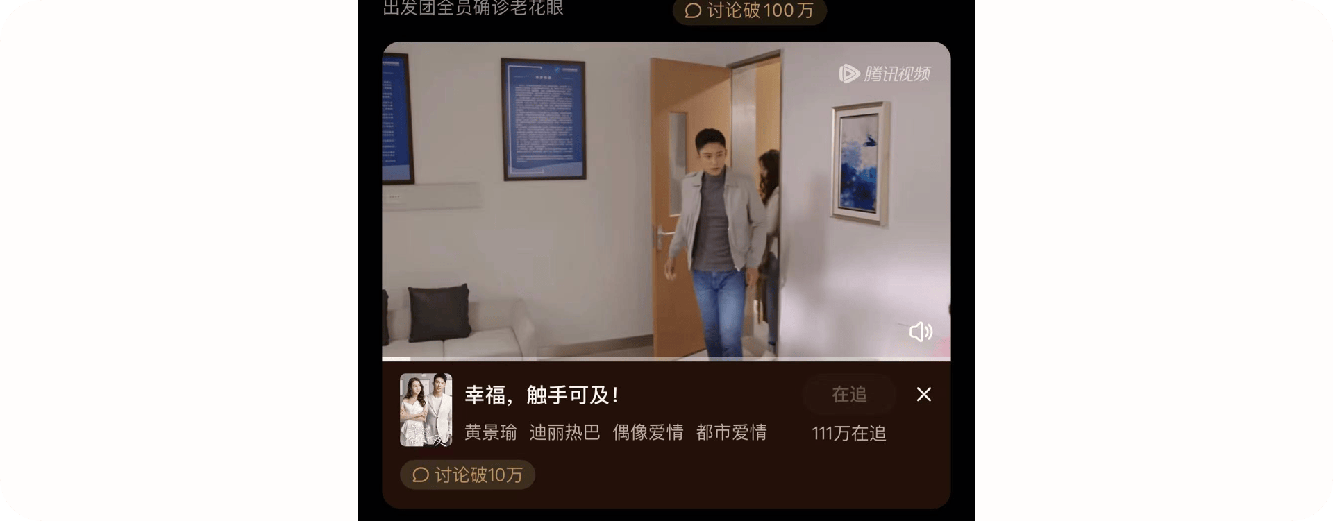 2.2.3產品亮點:視頻大卡片推薦這種樣式的推薦形式雖然同屏下相比雙瀑布流的可推薦內容少,但可以讓用戶更注重內容視頻本身,推薦的視頻內容都為該作品的熱門片段,小編經常看著看著就安利了一個新劇,很適合作為長視頻推薦列表使用
