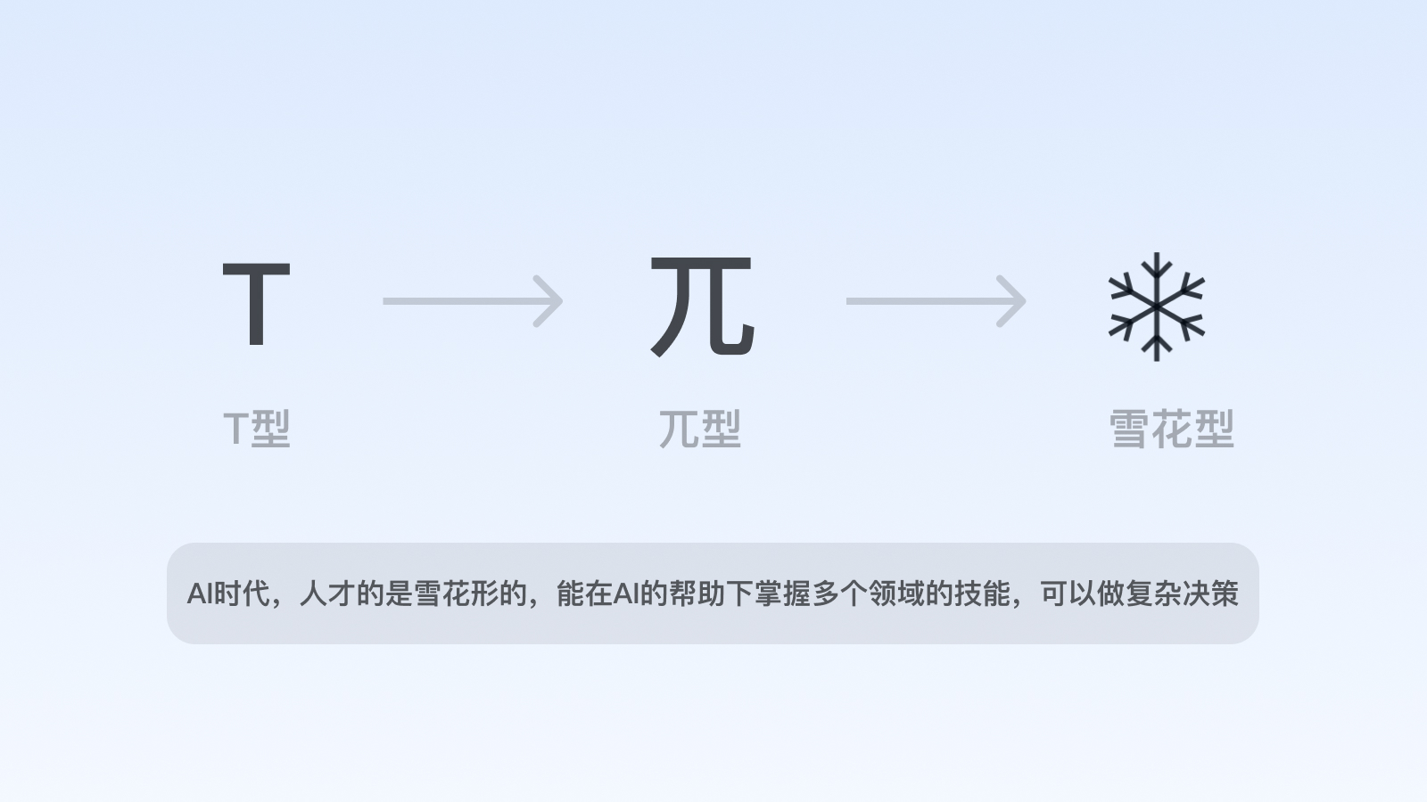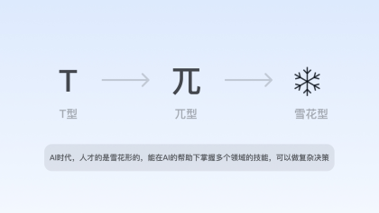 在人工智能時代,部分重復性、初級的設計需求將被替代,設計師乃至互聯網職場人的能力維度將隨之會有所改變,善用AI的綜合能力素養變為剛需,在能力維度上接近于“雪花型”。