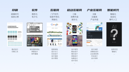 從信息交互的發展看,設計作為一種崗位,服務于商業在科技發展的不同時期,以平面設計為例,對設計師有著不同的要求: