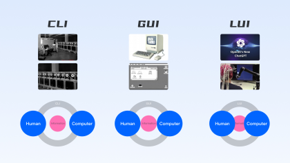 界面交互的需求繁榮得益于圖形交互的興起和市場的發展,從CLI(命令行)→GUI(圖形交互)→LUI(自然語言交互),對設計服務的要求自然不同: