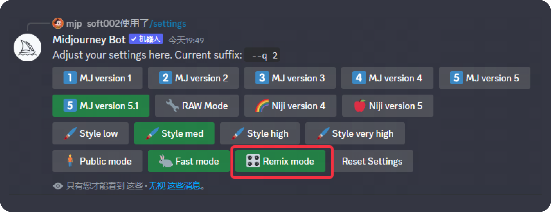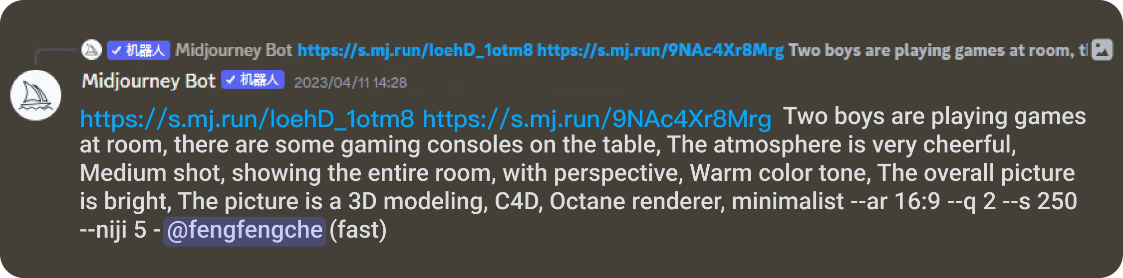確定好修改方向后,我們回到Midjourney中,設置好混音模式Remix mode,修改關鍵詞對畫面中元素進行替換。