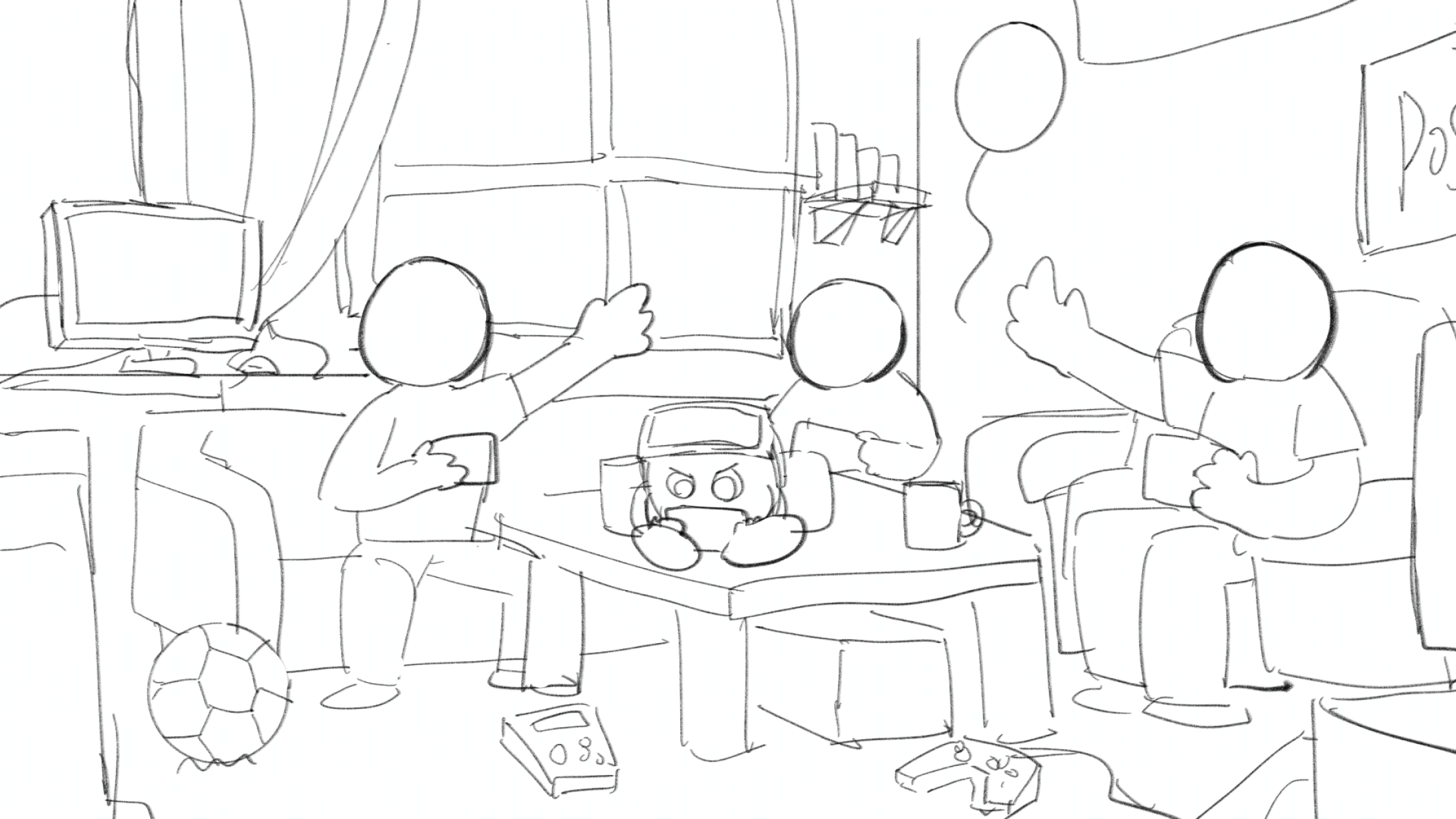 元素上需要加強與主題的關聯,例如游戲機、手機等。光影上,希望畫面明亮一些,可以嘗試在白天的環境下。視角上,希望加強畫面的透視感,視角也不一定是平視,可以帶一些仰視或者俯視使得畫面更加活潑。