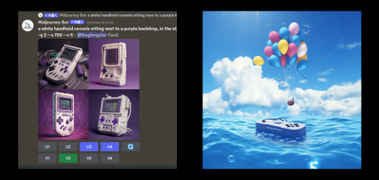 另外,一些零散的部件我們還是可以通過AI快速生成的。例如游戲機以及手柄,通過Midjourney就可以快速生成。