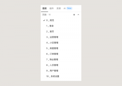 Page 就是軟件左上的畫布列表,一個項目如果頁面多,就一定要用 Page做拆分。而在我們當前的場景中,就可以根據交付的模塊階段劃分,每個模塊創建一個 Page,這樣開發在本次項目中只需要查看這個源文件就可以。