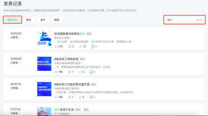 例如在微信公眾號(hào)發(fā)表記錄中的搜索,當(dāng)只輸入“設(shè)計(jì)”關(guān)鍵詞時(shí),搜索結(jié)果一共有202條,需要在這202條數(shù)據(jù)中找到自己的目標(biāo)值是比較難的。
