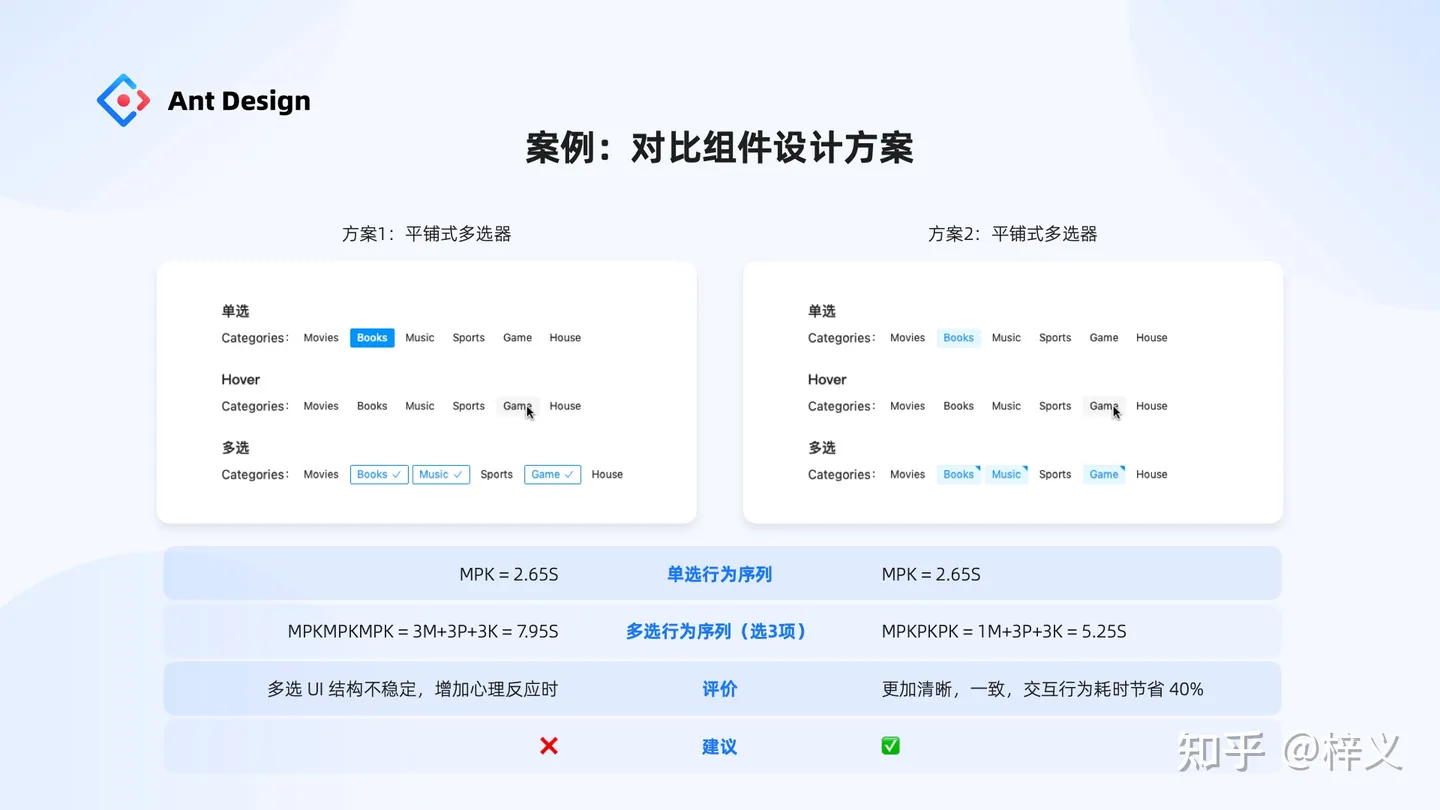 滿足一個「行為目的」可以有千萬種組件解決方案,那么哪種方案是最適合成為規范的呢?接下來第二部分就會跟大家分享如何評估組件方案的好壞。