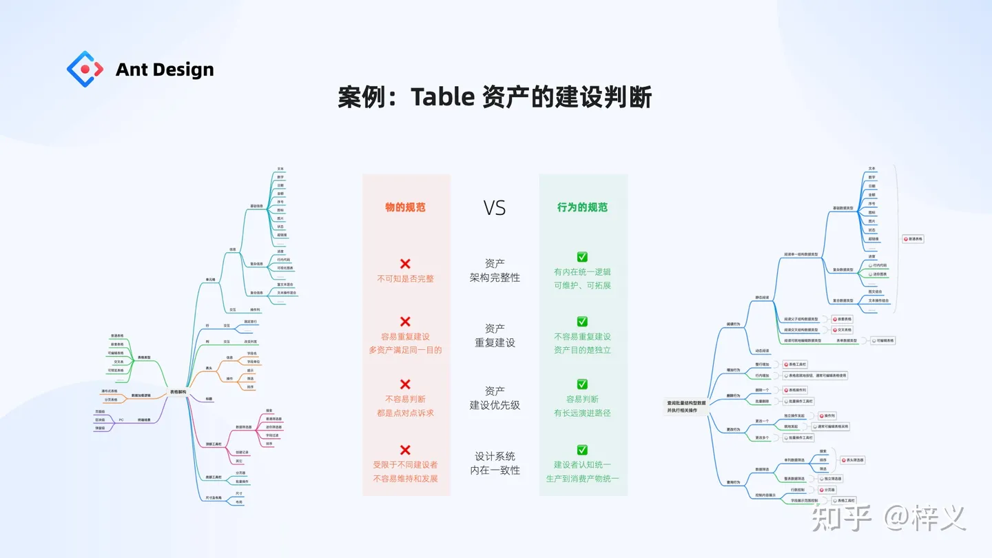 我們都知道,任何一個設計系統都有關于表格組件的定義,但各有差異。這種差異的根源也正是從物的規范去理解表格這個資產帶來的。過去我們內部也是從物的角度去抽象結構表格的建設范圍,會發現越抽象越多,最終只能交給專家感性判斷做什么與不做什么。