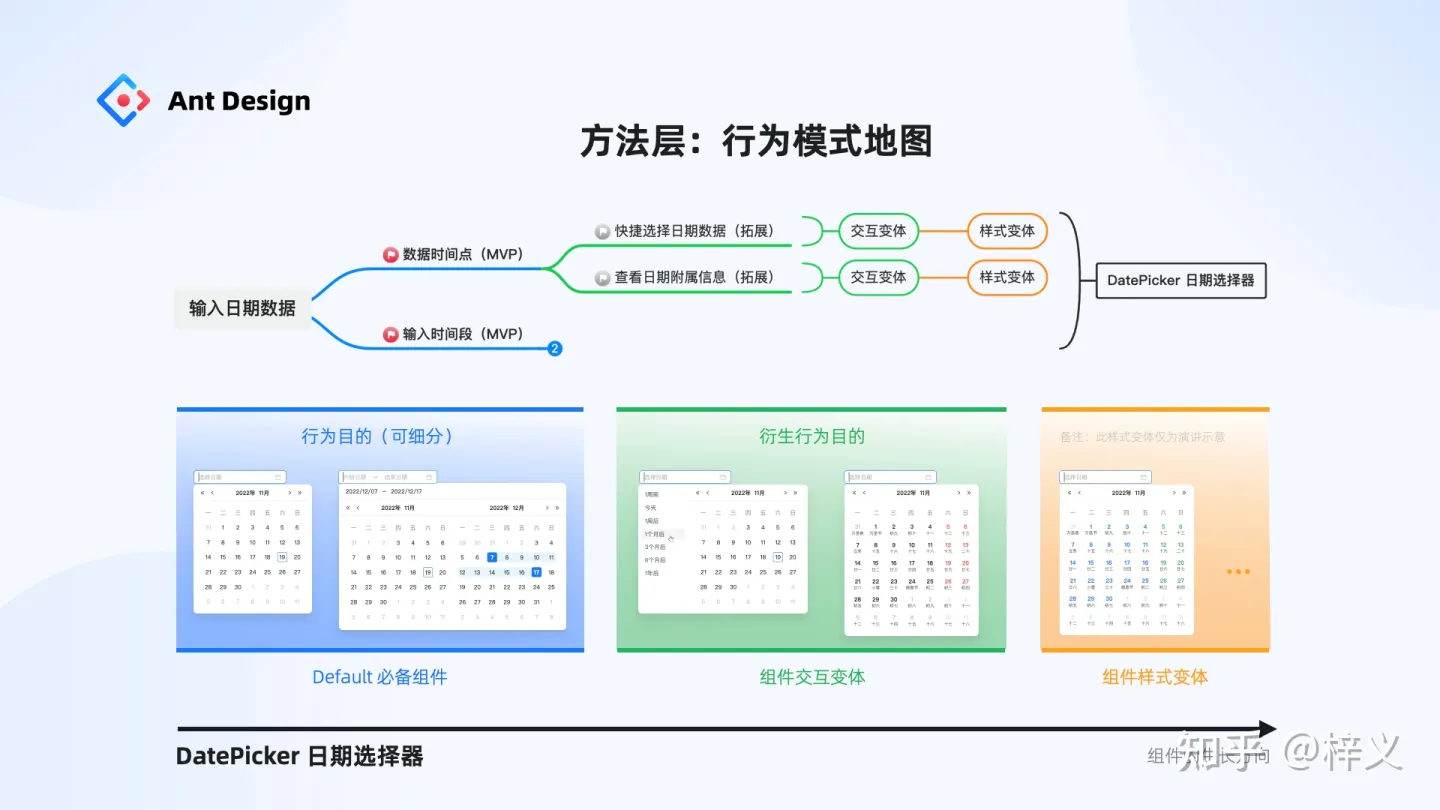 通過這樣一個行為模式地圖的拆解和定義,一個完整的「DataPicker 日期選擇器」便定義和建設完成了,而它未來的生長方向也有了清晰的預判。