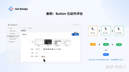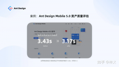在螞蟻內部,我們還將原規范應用到其它設計系統的建設當中。比如,Ant Design Mobile 5.0 今年引來大版本的更新,從 200+ 的冗余組件收斂成了 68 個通用組件,同時通過評估發現其組件質量也提升了不少,系統中單組件平均交互行為耗時從 3.42 降到了 3.17,高于業界平均。