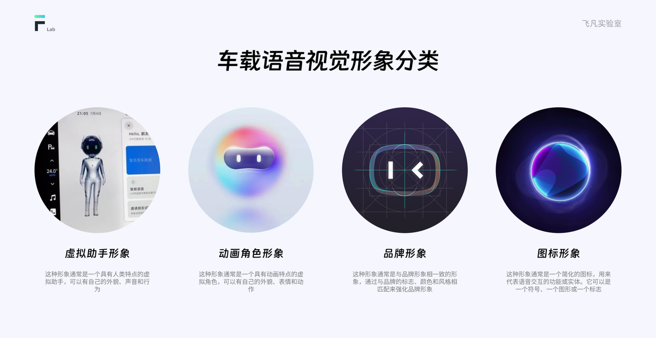這些類型并不是互斥的,實際上,車載語音視覺形象可以結合多種類型,以滿足不同的設計目標和用戶需求。無論是哪種形象類型,車載語音視覺形象的設計都應考慮與用戶的情感連接、品牌形象一致性和用戶體驗的關系。