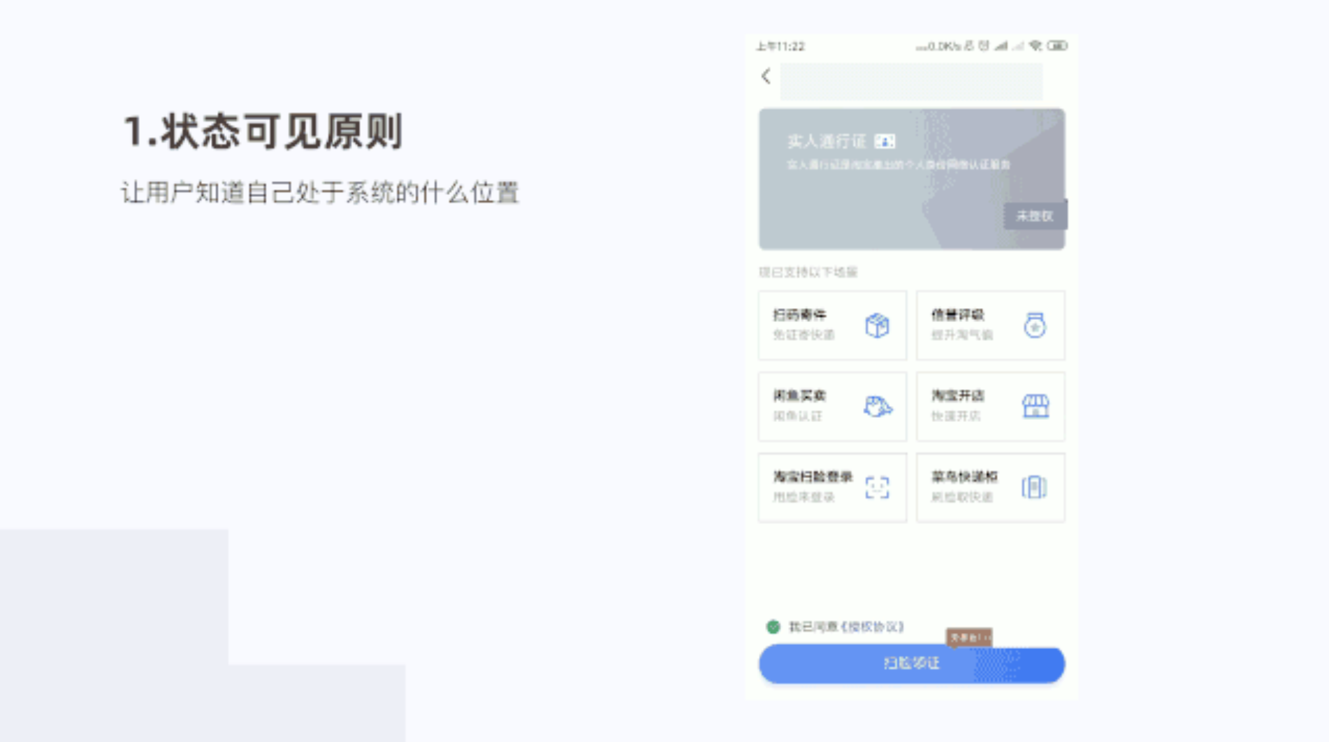 在閑魚(yú)頁(yè)面我們系統(tǒng)的標(biāo)題欄、TAB欄的提示貫穿整體,用戶(hù)知道我們所處的什么頁(yè)面。比如認(rèn)證提示,每一步告知用戶(hù)進(jìn)行到哪里了。