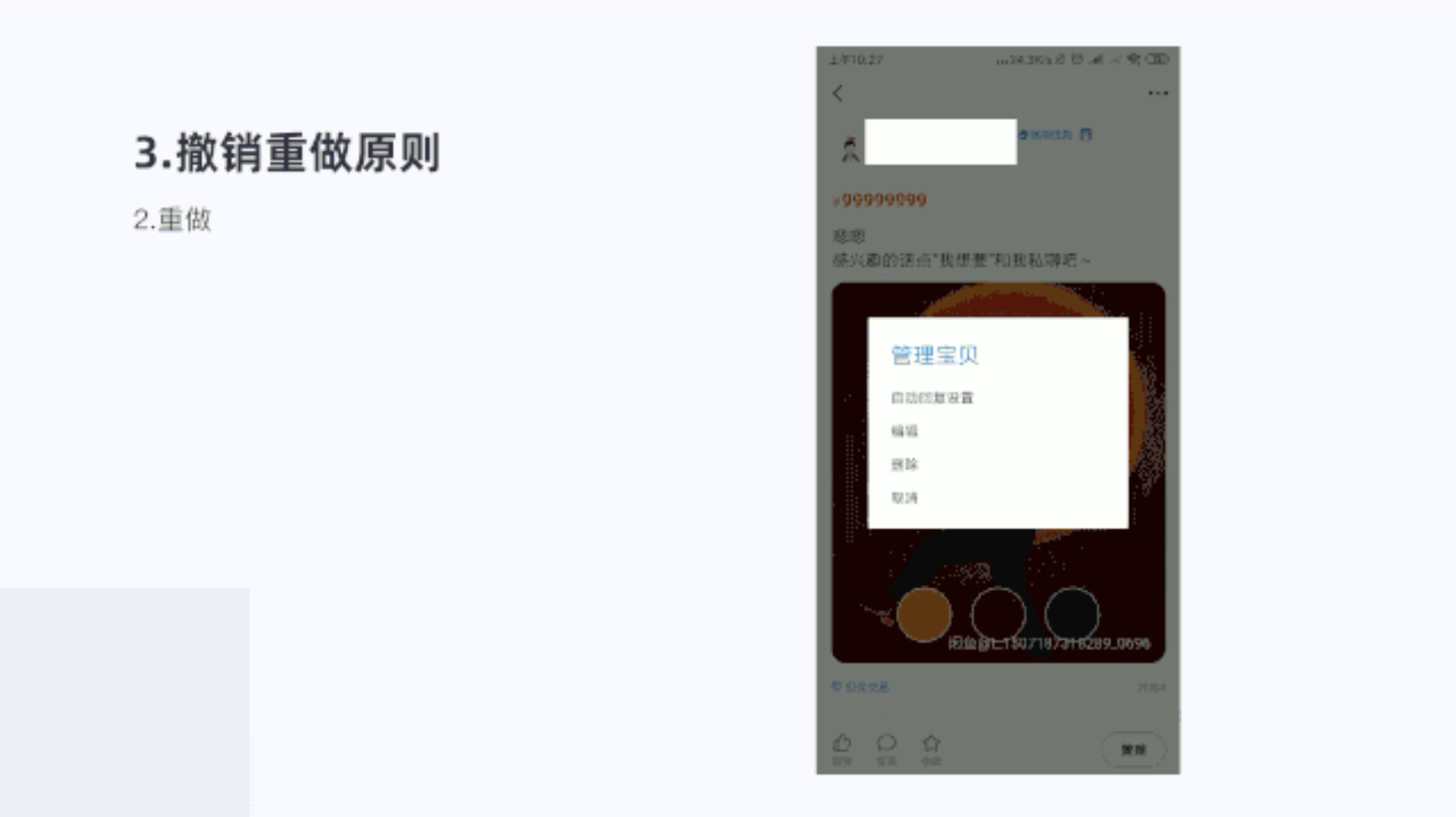 就是用戶(hù)撤銷(xiāo)上一步,又反悔了要到之前哪一步;或者用戶(hù)操作完成發(fā)布又反悔了重新發(fā)布,滿(mǎn)足用戶(hù)充足的反悔余地,給予用戶(hù)對(duì)產(chǎn)品的信心和控制感。