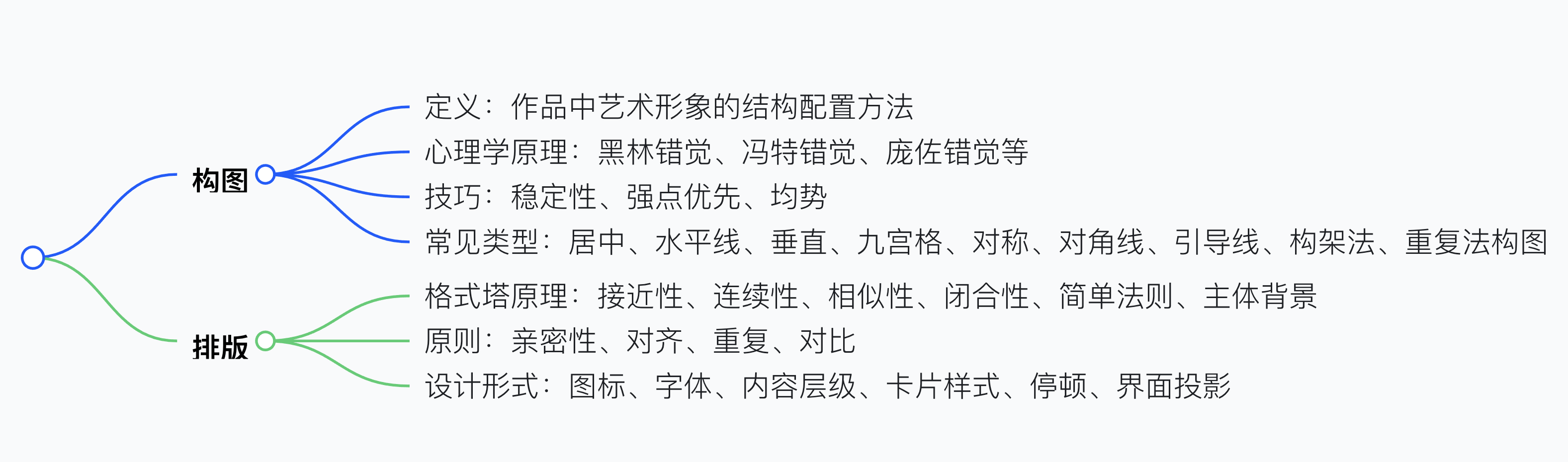 - 答案:格式塔原理在排版中的應用包括接近性(物體相對距離影響感知是否成整體)、連續(xù)性(視覺偏向感知連續(xù)形式,用卡片組合元素)、相似性(關(guān)注外表相似物體并聯(lián)系)、閉合性(視覺自動閉合或腦補殘缺圖形)、簡單法則(將復雜物體轉(zhuǎn)換為單一形狀)、主體背景(區(qū)分主體與背景突出主要模塊)。