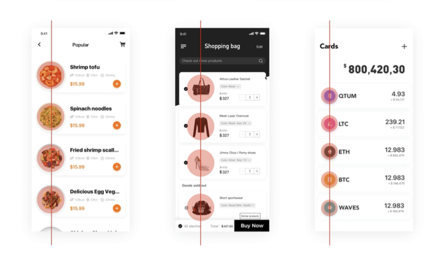- 連續(xù)性:視覺偏向感知連續(xù)形式,元素共享明確界限區(qū)域則分一組,設計中常用卡片式組合相關(guān)元素。