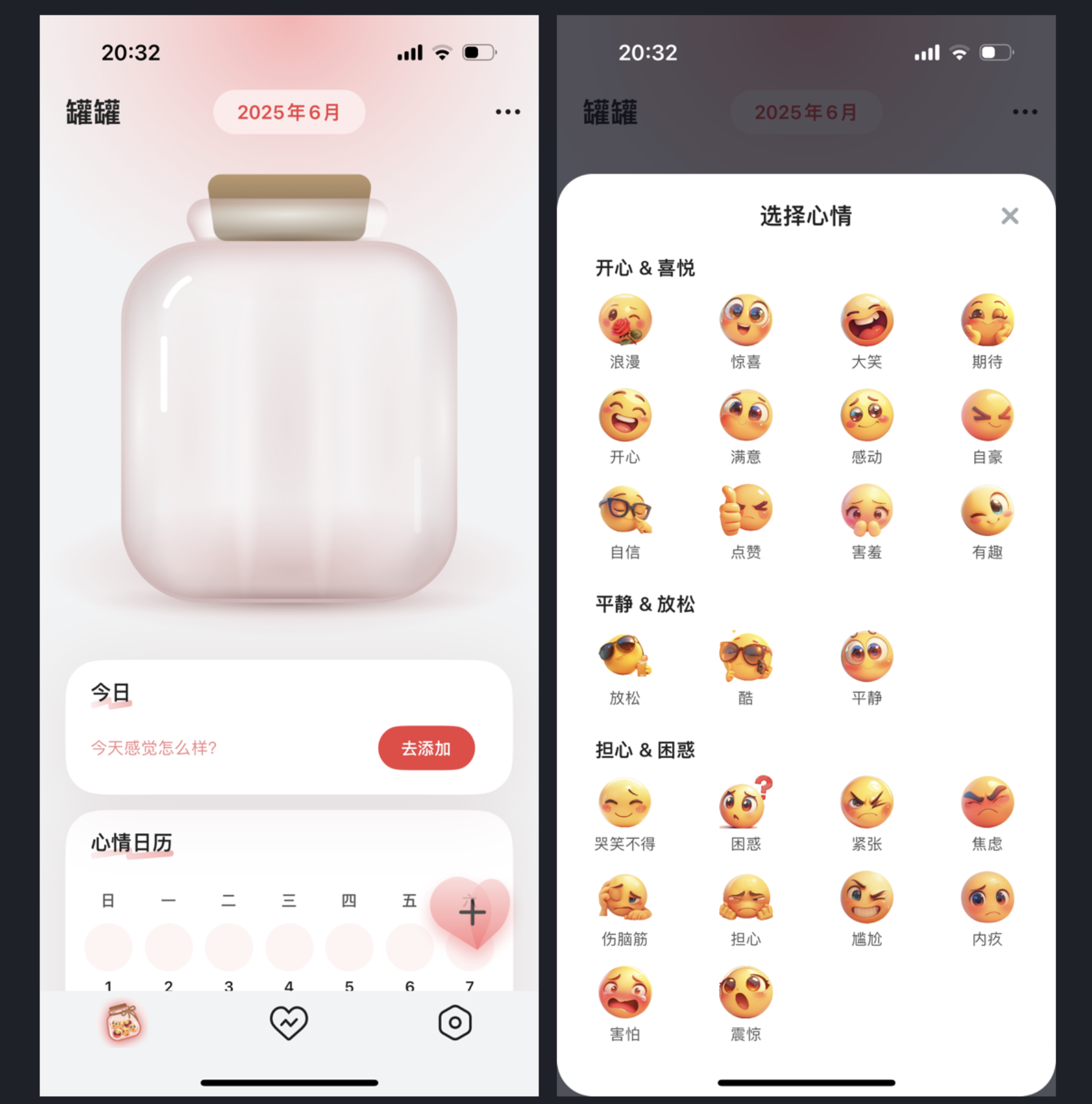 心情罐罐 App 設計獨特,用戶可通過不同表情記錄每日心情并放入 “罐罐”,如同收納幸運星。該 App 在設計、交互和動效上體驗良好,還提供心情指數(shù)、心情日歷、數(shù)據(jù)統(tǒng)計等功能,用戶可升級會員解鎖更多專屬數(shù)據(jù)。