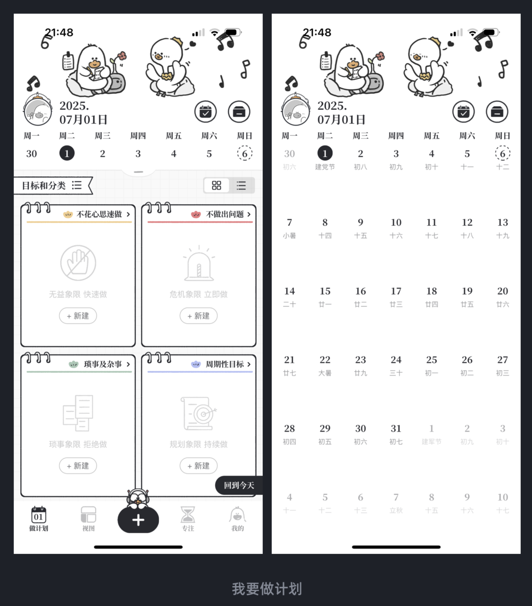 “我要做計劃” App 不僅日歷下拉展開 / 收起的交互便利,還在左右切換時模擬翻頁聲效,搭配涂鴉式設計風格,增強了場景代入感。