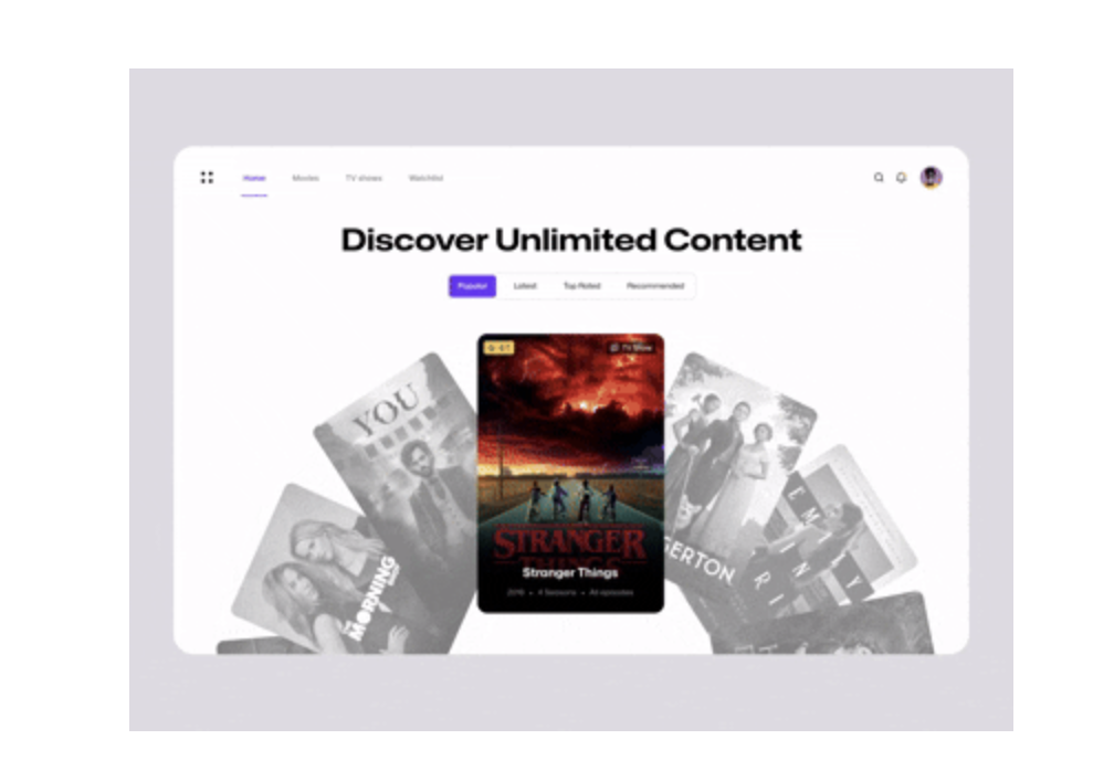 - 定義:借鑒現(xiàn)實(shí)中撲克牌的翻頁、堆疊邏輯,內(nèi)容卡片以層疊或并列形式呈現(xiàn),切換時(shí)帶有滑動(dòng)、翻轉(zhuǎn)等物理動(dòng)效,讓用戶直觀感知 “內(nèi)容切換” 的動(dòng)作。