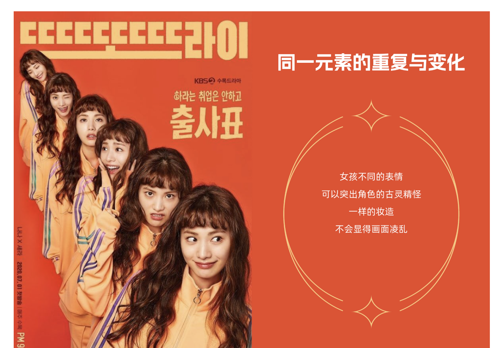 變化是為了讓重復更具活力,而非打破整體的統一性。在設計中,變化的維度應控制在有限范圍內,如顏色、大小、細節形態等,避免因變化過多導致畫面混亂。女孩表情重復的設計中,妝造、構圖保持統一,僅表情發生變化,既保證了畫面的整體性,又通過變化傳遞豐富信息;健身主題設計中,“FAT” 到 “FIT” 的轉變僅替換核心元素,版式與色彩保持一致,讓創意表達既清晰又不破壞重復的秩序感。