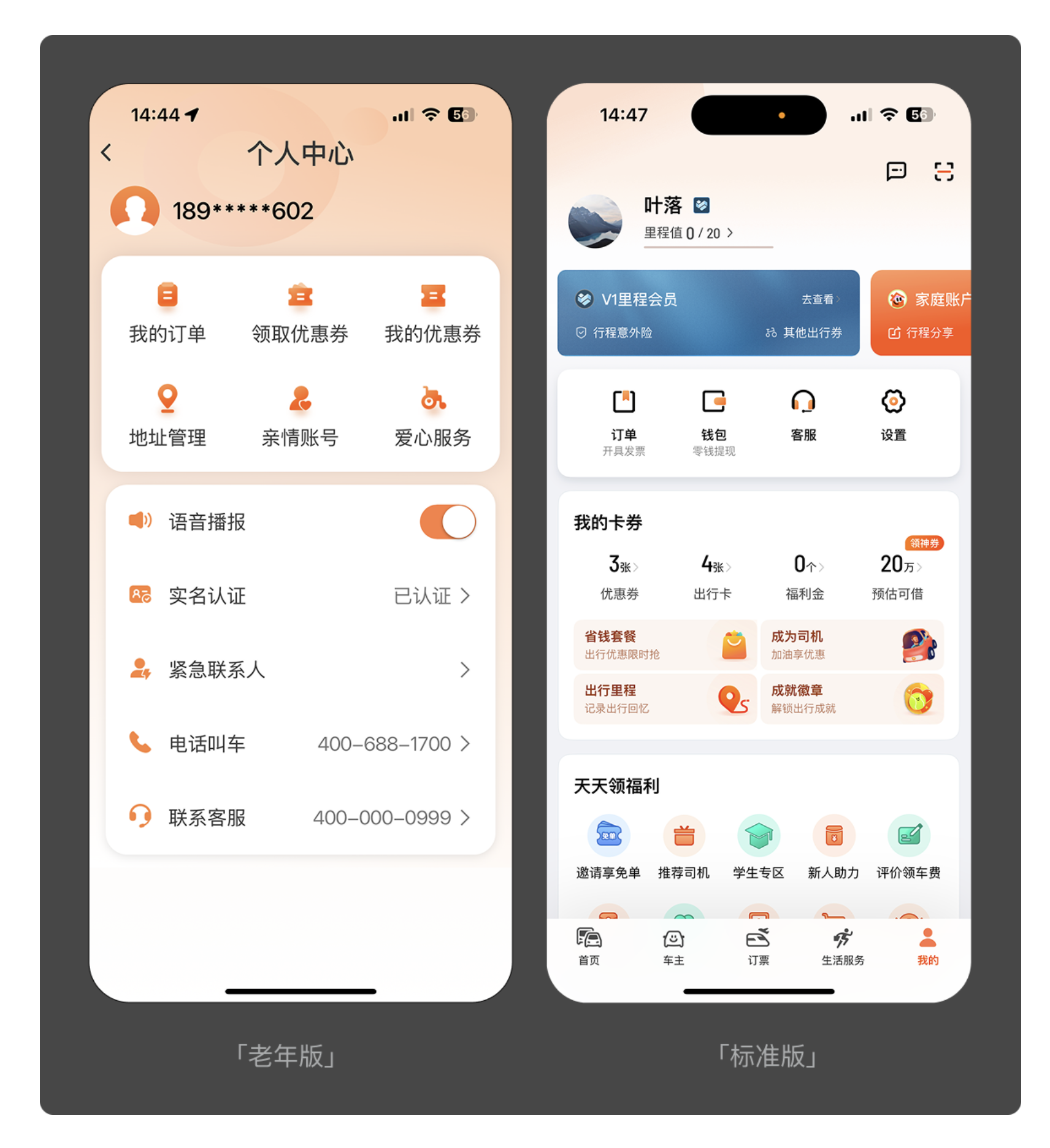 老年用戶的操作耐心與記憶能力相對有限,過多的點擊步驟和冗余功能會顯著增加使用門檻。滴滴老年版的設計堪稱典范:摒棄了標準版 “輸入目的地 - 選擇車型 - 確認叫車” 的復雜流程,在首頁直接設置 “呼叫出租車” 核心按鈕,老人無需額外學習,點擊即可發起叫車,直觀又高效。無獨有偶,QQ 老年版也對 “動態查看” 功能進行了優化,標準版需要兩次點擊才能進入的頁面,老年版只需一次點擊便可直達,大幅提升了操作效率。這種 “減法設計” 的核心,是剝離非必要功能,讓老人的注意力集中在核心需求上,避免被無關信息干擾。