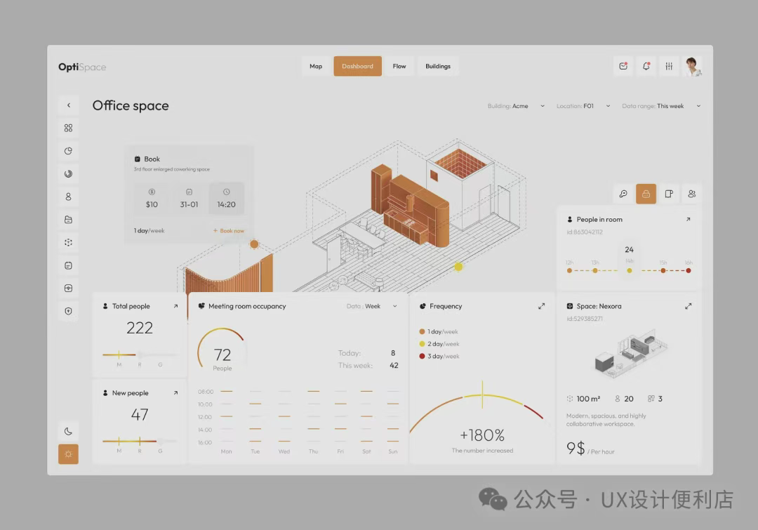 一直以來復雜的工業頁面或者dashboard,都會采用比較簡潔的UI效果,很少會增加一些質感。畢竟這類頁面的設計重點是突出信息。但是來自RonDesignLab 的設計,給我們打開了新的思路。