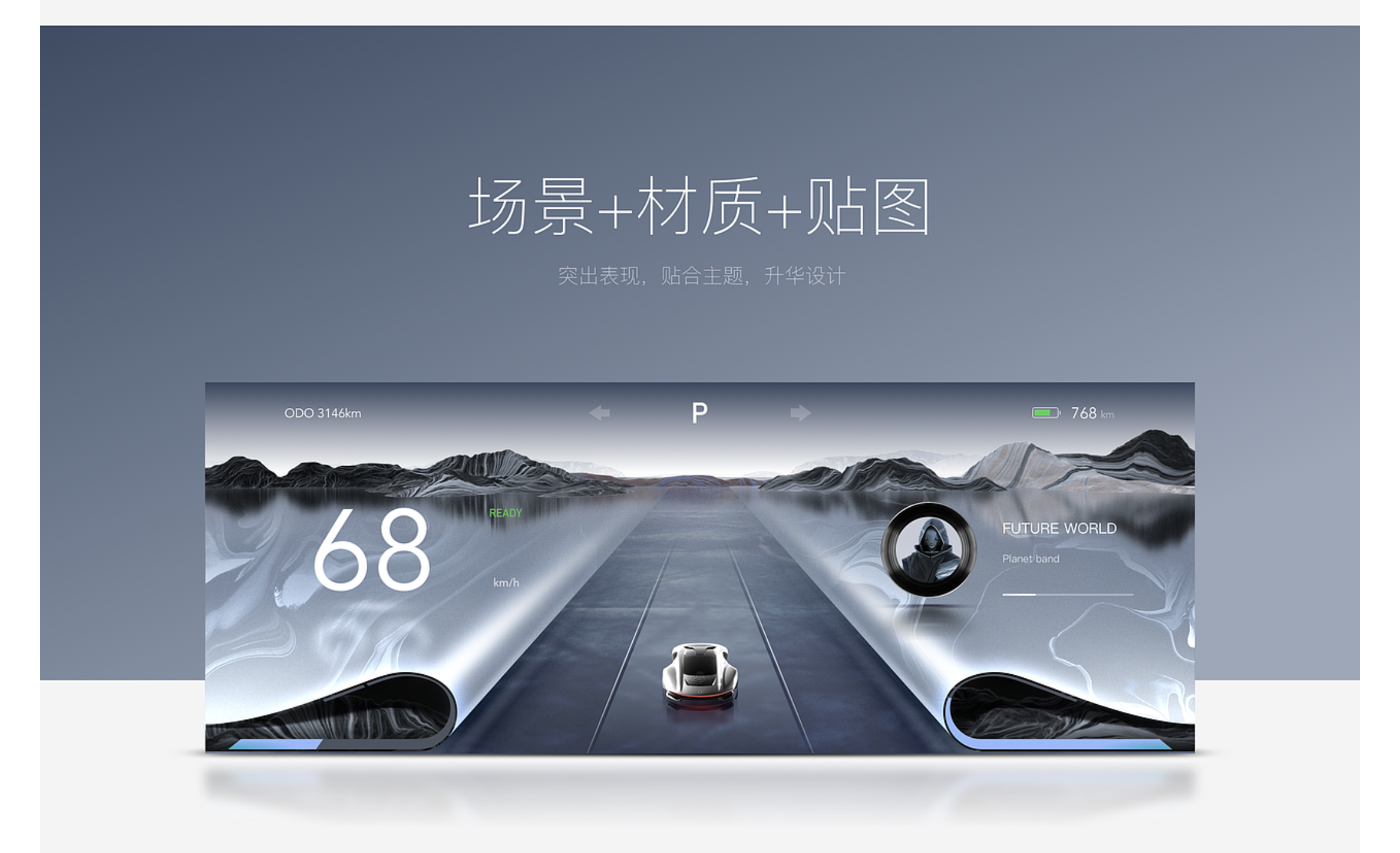 - 皮革質感:通過紋理貼圖與柔和光影,傳遞豪華溫潤的質感,適合高端車型,可應用于儀表邊緣包裹區域,增加觸感聯想;