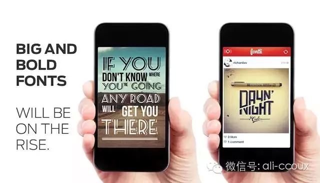 隨著滾動式瀏覽方式的普及,以內容為核心的設計思路,在界面設計上會愈加明顯,沒有過多修飾的排版結構,不再盲目追求將很多內容擠在一屏以內,反之是加大間距和行高,讓用戶的閱讀更加聚焦,享受到沉浸式體驗。大屏手機的流行,也促進了大字體在移動端APP上流行的節(jié)奏,大字體會賦予界面以層次,提高特定元素的視覺重量,讓用戶難以忘懷。字體夠大、夠優(yōu)雅、夠獨特、夠貼合,也就能提升頁面的氣質和特色,而這正是移動端APP設計的另外一次重要的機會。