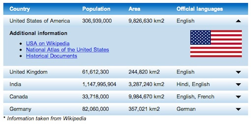 另外一個功能是給表格的特定行增加展開功能。可以把大量內容放置到一個相對整齊的空間。一個簡單的jQuery小 插件jExpand可以實現這個功能。具體實現可以查看 tutorial from jankoatwarpspeed