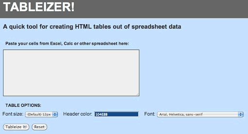 我偶然發現了一個小的web應用程序:Tableizer ,它可以把Excel里的表格粘貼進來轉換成HTML。利用這種方式你仍然需要自己寫一些樣式,但是會節省前期的表格構建時間。