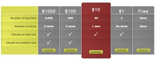 這里是“Ask The CSS Guy”里的另一個例子,允許用戶選擇表格的給定列(價格表),當前選擇會高亮突出顯示,并且能展開顯示更多信息。這種方式和上一個例子是一致的,但是有不同的效果。查看demo 具體實現請點擊:
