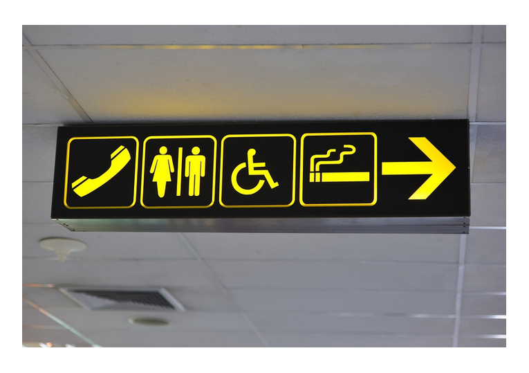 這些差異在機場的指示標牌的設(shè)計上很明顯。每天都有成百萬的來自不同民族和文化背景的人們通過機場。標牌必須讓全世界人民容易辨認理解,而且仍然保持同一個含義。(參考ISO 7001)