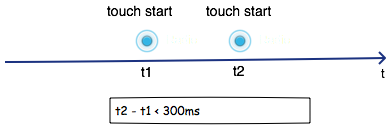 雙擊事件本質是兩次快速的單擊。也即是說,兩次點擊的間隔時間很短。通過一定的測試量化后,我們把兩次單擊的時間間隔設為300毫秒。