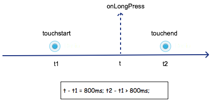 長按應該是最容易分解的手勢。我們可以這樣分解:在 touchstart 發生后的很長一段時間內,如果沒有發生 touchmove 或者 touchend 事件,那么就觸發長按手勢。