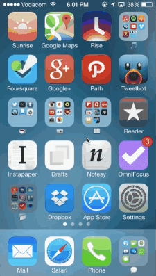 Apple iOS系統的UI設計中就很好的利用了這些有意義的過渡動效。下面的案例中,用戶點擊文件夾或者APP,圖標當大擴展到整個屏幕,展現出細節和詳情。