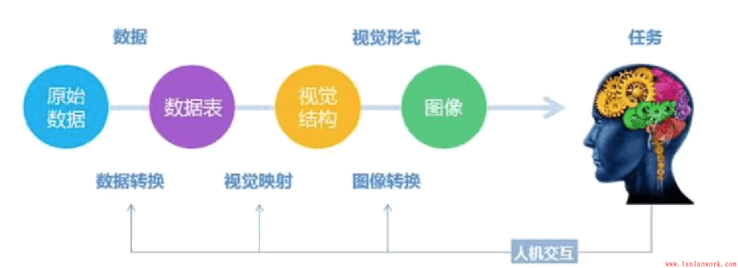 有了故事,還需要找到數據,并且具有對數據進行處理的能力,圖1是一個可視化參考模型,它反映的是一系列的數據的轉換過程:
