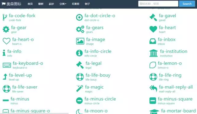 奧森圖標(Font Awesome),提供豐富的矢量字體圖標—通過CSS可以任意控制所有圖標的大小 ,顏色,陰影:http://www.thinkcmf.com/font/search.html
