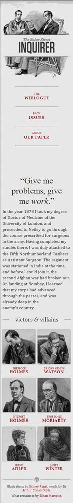 他制作了一個范例 ,里面是《福爾摩斯歷險記》六個主人公的頭像。如果屏幕寬度大于1300像素,則6張圖片并排在一行。