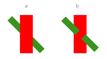 連續原則 和閉合原則有些類似。以實物形象上的不連續使瀏覽者產生心理上的連續知覺。看到a圖,瀏覽者會認為是一個綠色條和一個紅色相交,而事實卻是b圖。