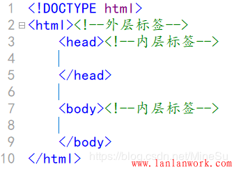 如圖所示<html>為外層標簽,稱為父元素,<head>和<body>為內層標簽,稱為子元素。其中<head>與<body>又互稱為兄弟元素