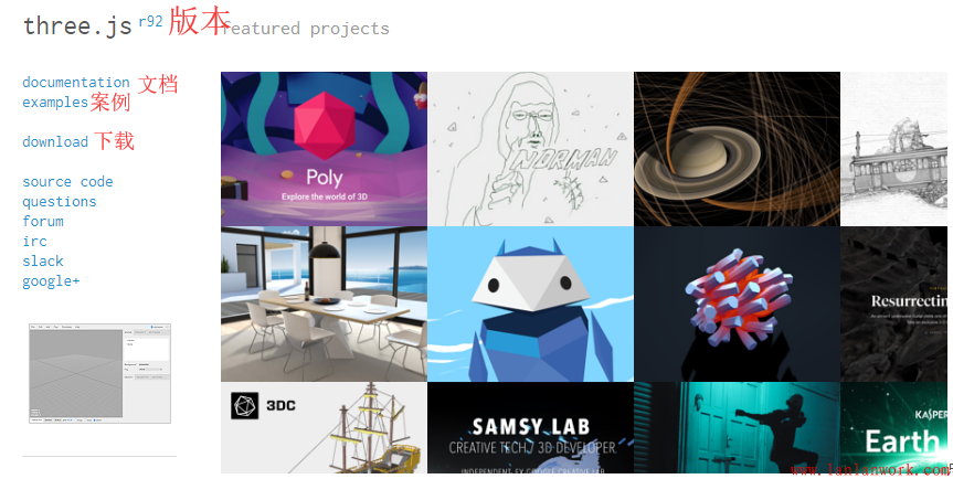 examples:Three.js 的官方案例,如果全都學會,必將成為大神;