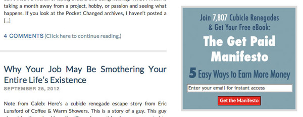 Pocket Changed的訂閱表單是個不錯的例子,他們向訪問者展示了當前已有多少人進行了訂閱下載;此外,他們也非常簡單直接的讓訪問者了解到在填寫郵箱后可以得到什么。如果可以再加入一些來自真實訂閱用戶的贊許反饋,這個表單的轉(zhuǎn)化效果會更好。